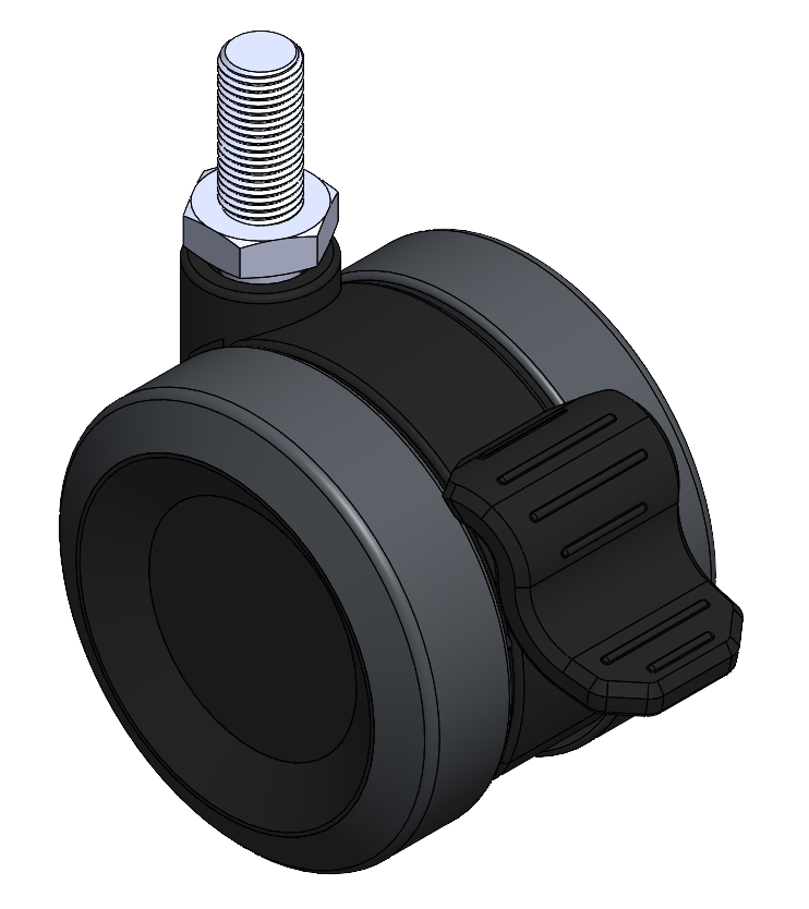 Swivel Caster, thread-Riveted injection-molded Fork—M12-P1.75 reinforced Polypropylene Fork, Mounting Type - Threaded Stem Polypropylene (PP) core, polyvinyl chloride (PVC) tread Dark gray, wheel—tube-type. |