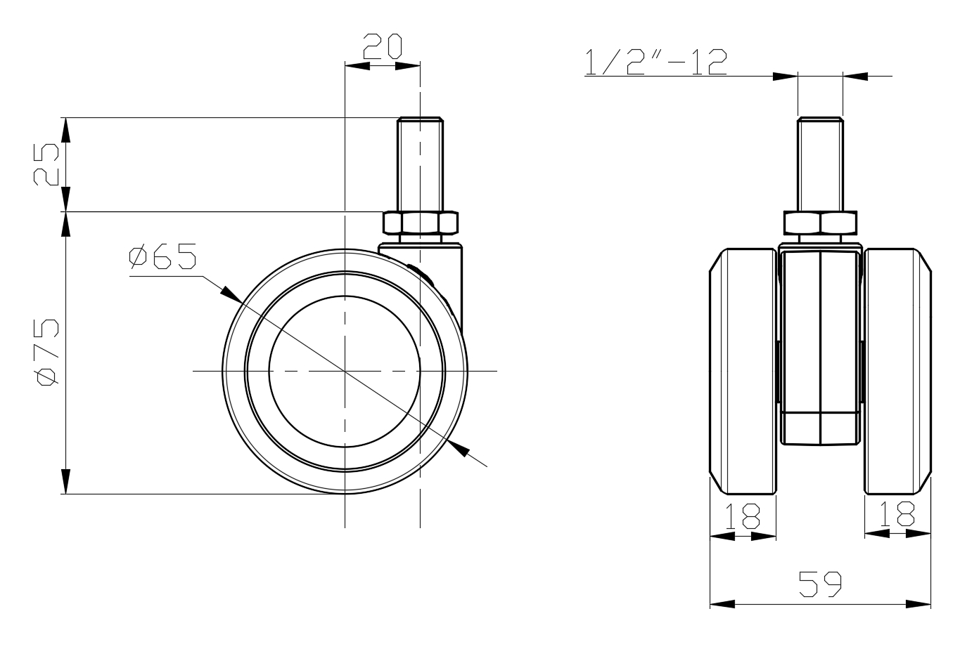 Wheel surface: PVC polyvinyl chloride Wheel Center: PP polypropylene Drawings are for reference only and may differ from the product |