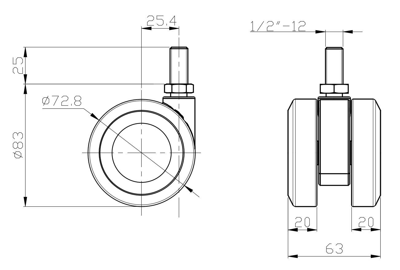 Swivel Caster, thread-Riveted Injection Molding Fork - 1/2"-12"