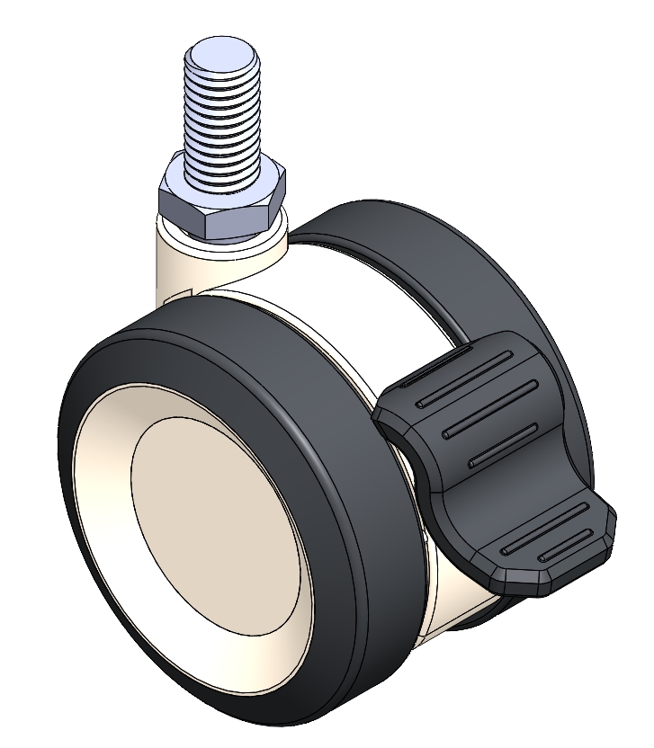 Caster with a single-brake With locking system, thread-Riveted, Injection Molding Fork - 1/2"-12.