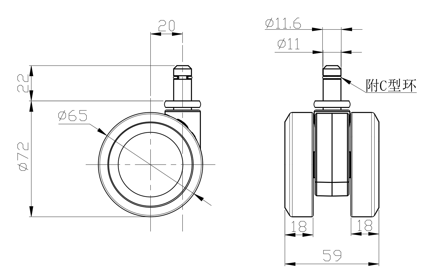 1110-YOYO YOYO Series-Light Duty Twin Wheel Caster Series (All Plastic) |