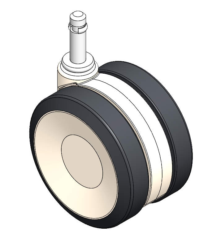 Swivel Caster, Cylindrical Stem injection-molded Fork—Ø11x38L reinforced Polypropylene Fork, insert-type Mounting Type mechanism Polypropylene (PP) core, polyvinyl chloride (PVC) tread White-dark gray, Bearing—Ball Bearing. |