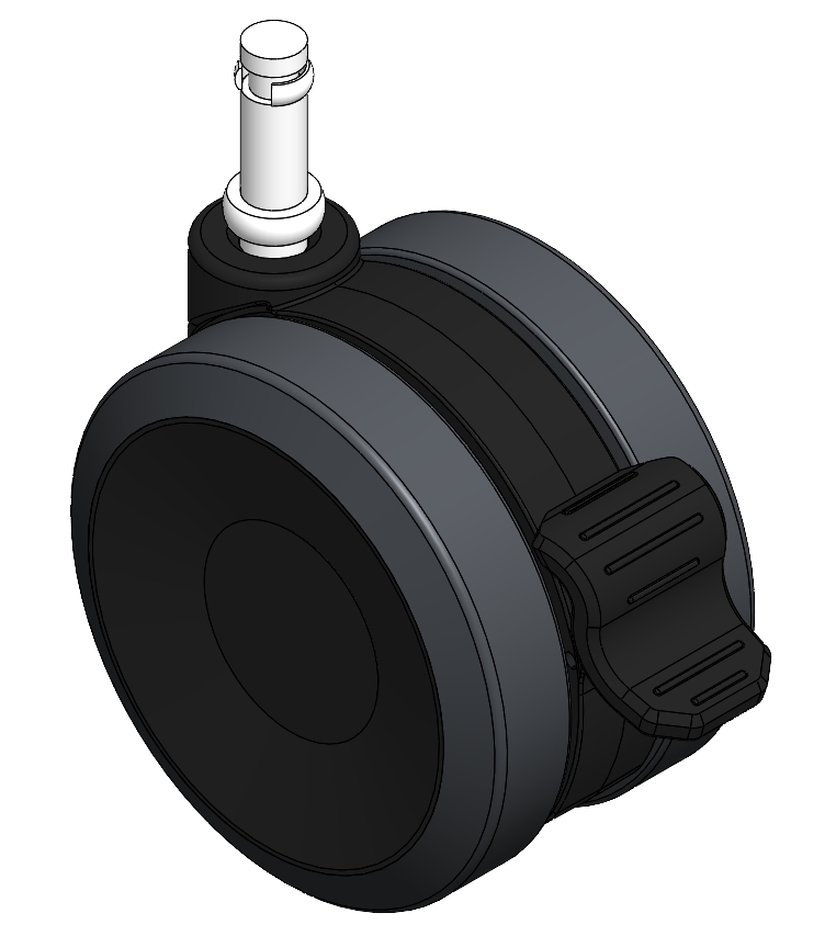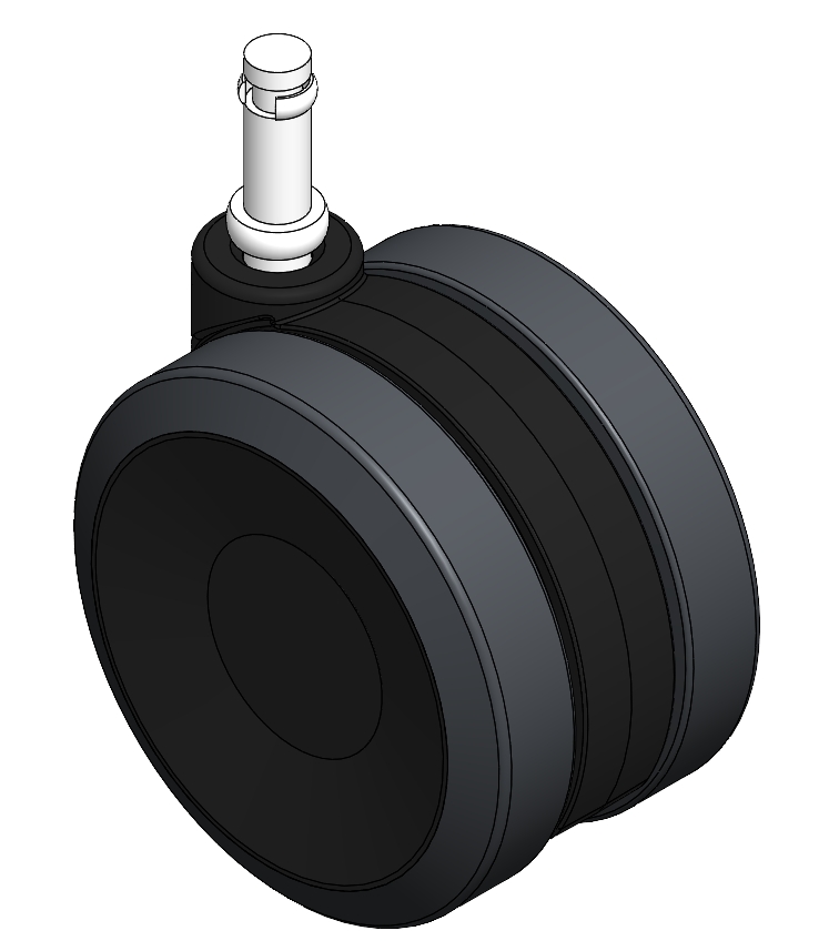 Swivel Caster, Cylindrical Stem injection-molded Fork—Ø11 x 31.8L reinforced Polypropylene Fork, insert-type Mounting Type mechanism Polypropylene (PP) core, polyvinyl chloride (PVC) tread Dark gray, Bearing—Ball Bearing. |