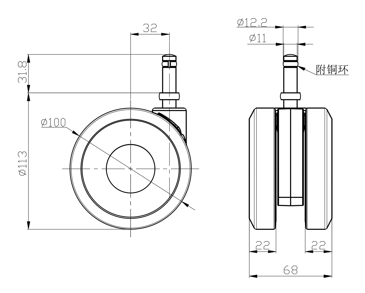 Wheel Tread: PVC polyvinyl chloride Wheel Center: PP polypropylene Drawings are for reference only and may differ from the product |