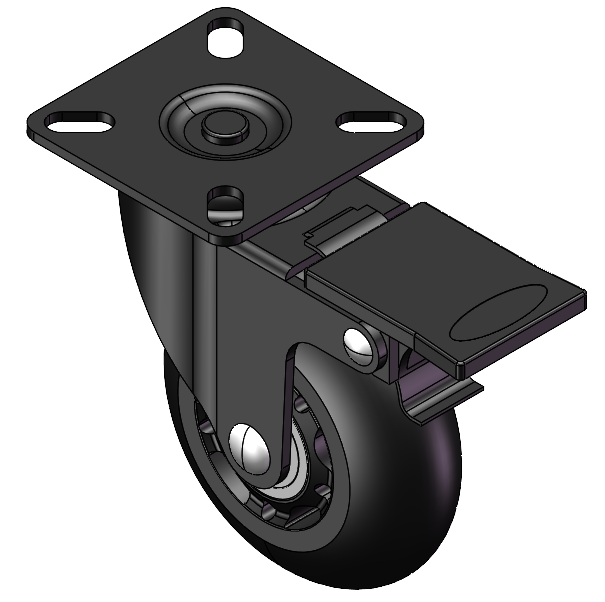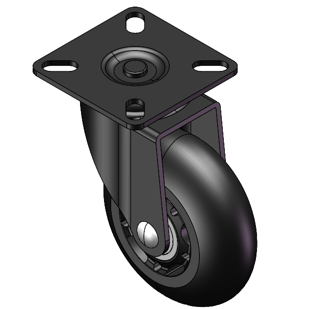 Electroplated surface, Mounting Type - Top Plate. Polypropylene core with High Quality Polyurethane Wheel Tread. Translucent black finish. Bearings: Ball Bearings. |