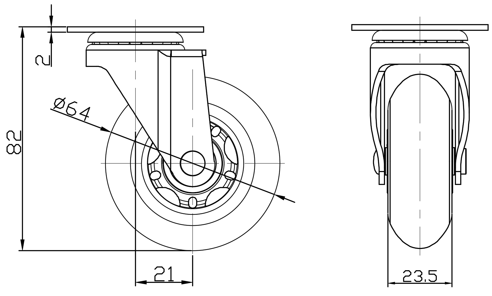 PU (black transparent) Wheel Diameter × Wheel Width 64 × 23.5mm |