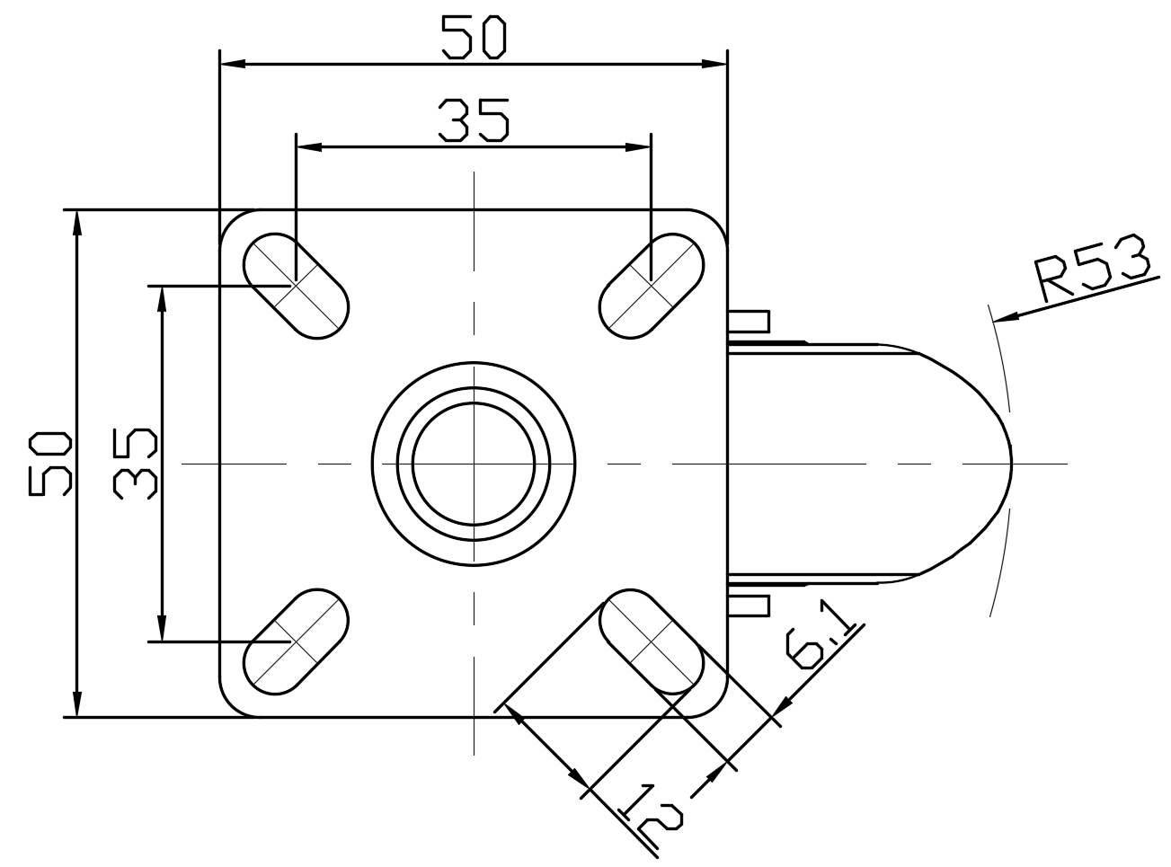 Swivel Caster with Riveted Fork and Stamping Fork with 85 x 70mm (3-3/8" x 2-3/4") Bolt Hole Spacings.