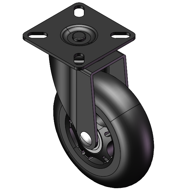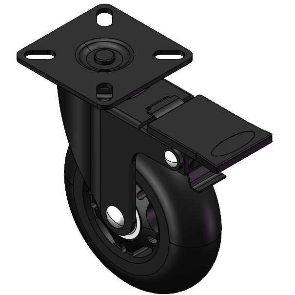 Electroplated surface, Mounting Type - Top Plate. Polypropylene core with High Quality Polyurethane Wheel Tread. Translucent black finish. Bearings with Ball Bearings. |