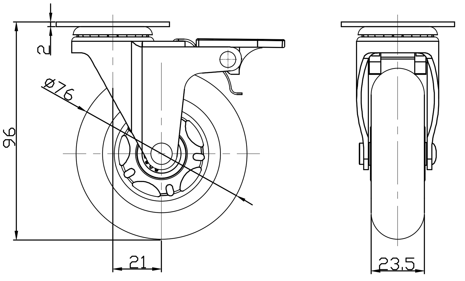 PU (Black Transparent) Wheel Diameter × Wheel Width 76 × 23.5mm |