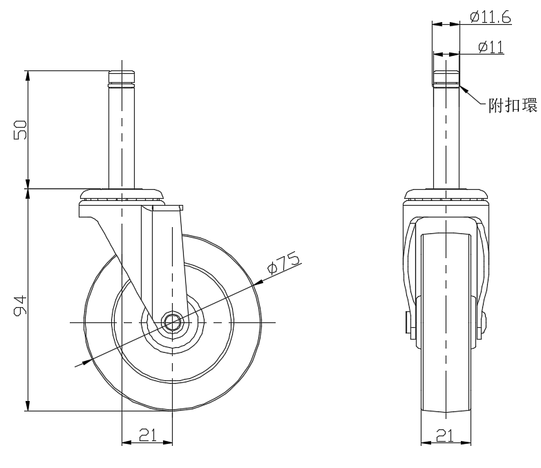 | PPR輪(黑黑平) 輪徑 × 輪寬 75 x 21mm |