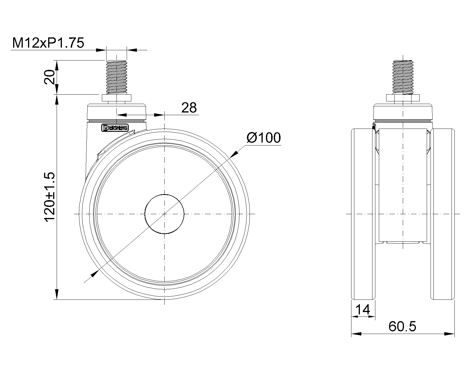 | Lót bánh xe PPR (Màu trắng xám đậm) Đường kính bánh×Chiều rộng bánh 100×14(60.5)mm |