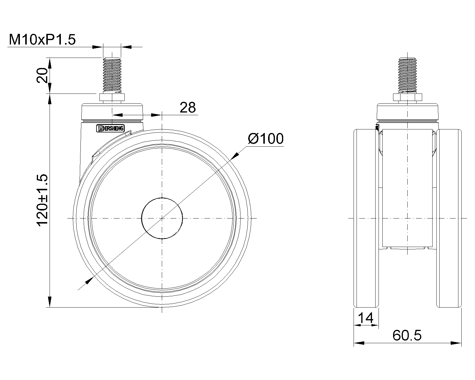 | Lót bánh xe PPR (Màu trắng xám đậm) Đường kính bánh×Chiều rộng bánh 100×14(60.5)mm |