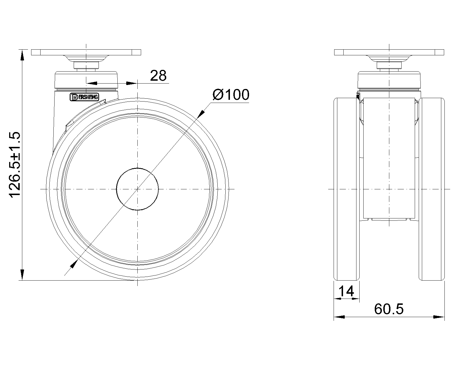 | Lót bánh xe PPR (Màu trắng xám đậm) Đường kính bánh×Chiều rộng bánh 100×14(60.5)mm |