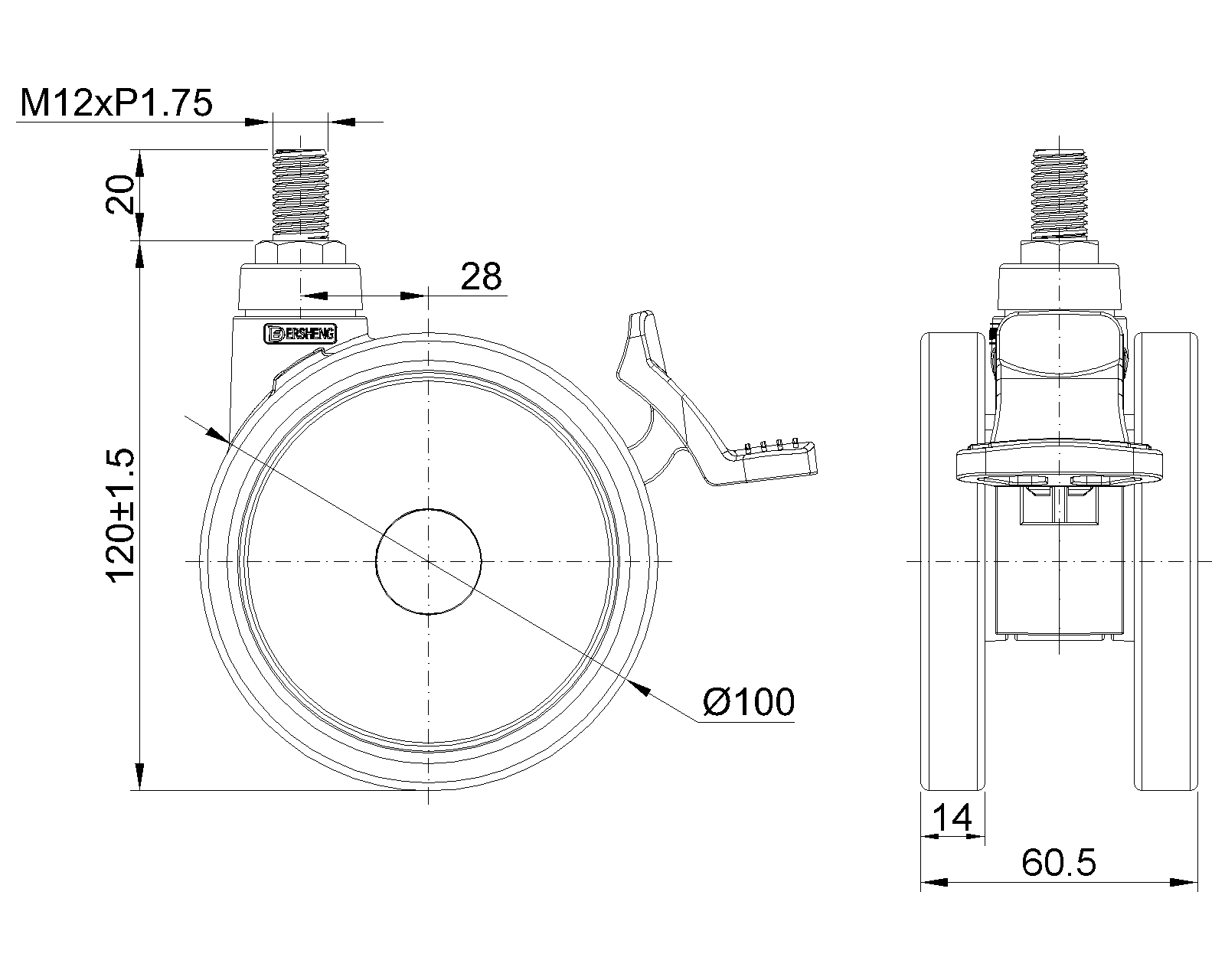 | Lót bánh xe PPR (Màu trắng xám đậm) Đường kính bánh×Chiều rộng bánh 100×14(60.5)mm |