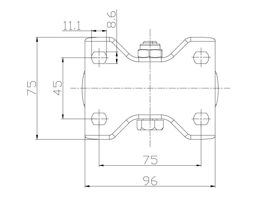 底板规格 96 x 75mm 底板孔距 75 x 45mm 底板孔径 11.1 x 8.6mm 总高 137mm 硬度 80±5° Shore A 荷重(动态) 80kgs |