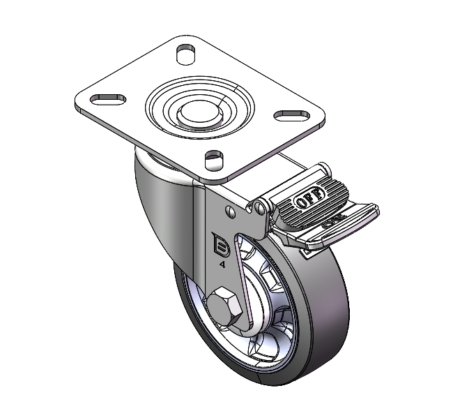 表面镀锌,底板式安装装置 加强式耐冲击聚丙烯轮芯,热塑性弹性体(TPR)轮面 珠光深灰色,轮子轴承 — 精密滚珠。 |