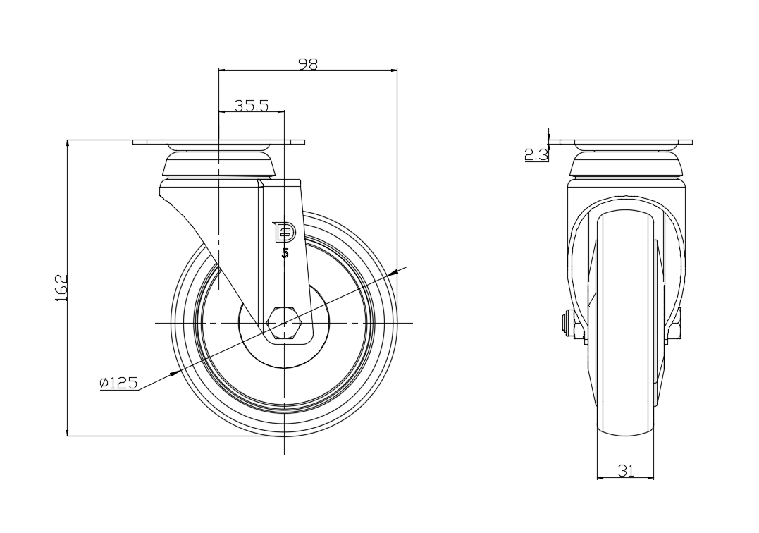 | PPU轮(灰色) 轮径 × 轮宽 125 x 31mm |