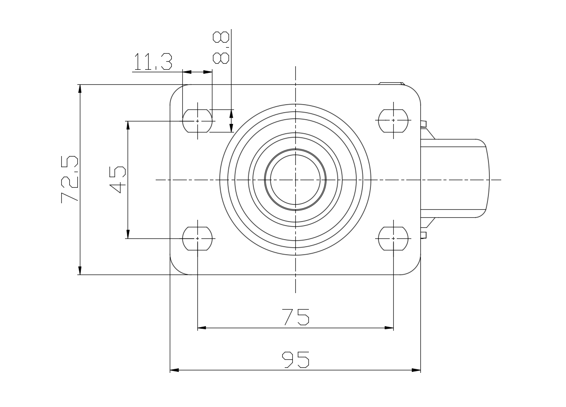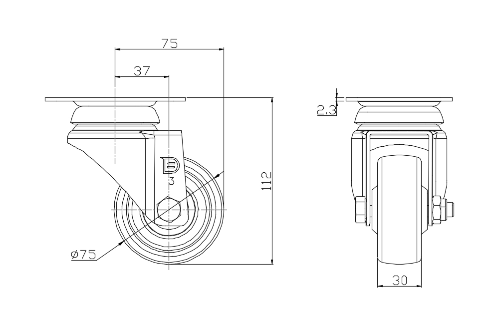 Rubber Wheel Diameter × Wheel Width 75 x 30mm |