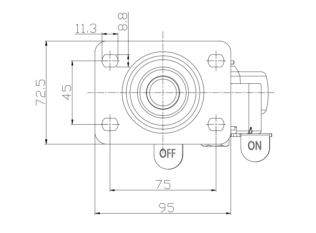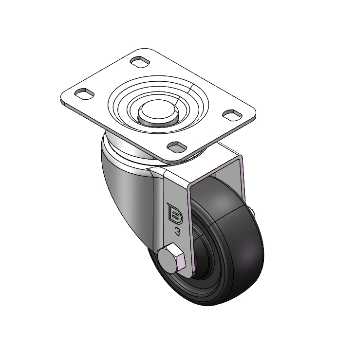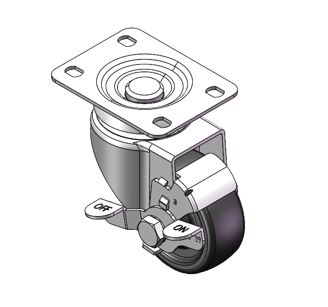 Castors with Side Brake locking system. Top Plate Riveted Stamping Fork - High-grade holes Surface Zine-Plated, Mounting Type - Top Plate Reinforced Polypropylene, High-Quality Resilient Rubber Wheel Tread Wheels-Plain Bearing |