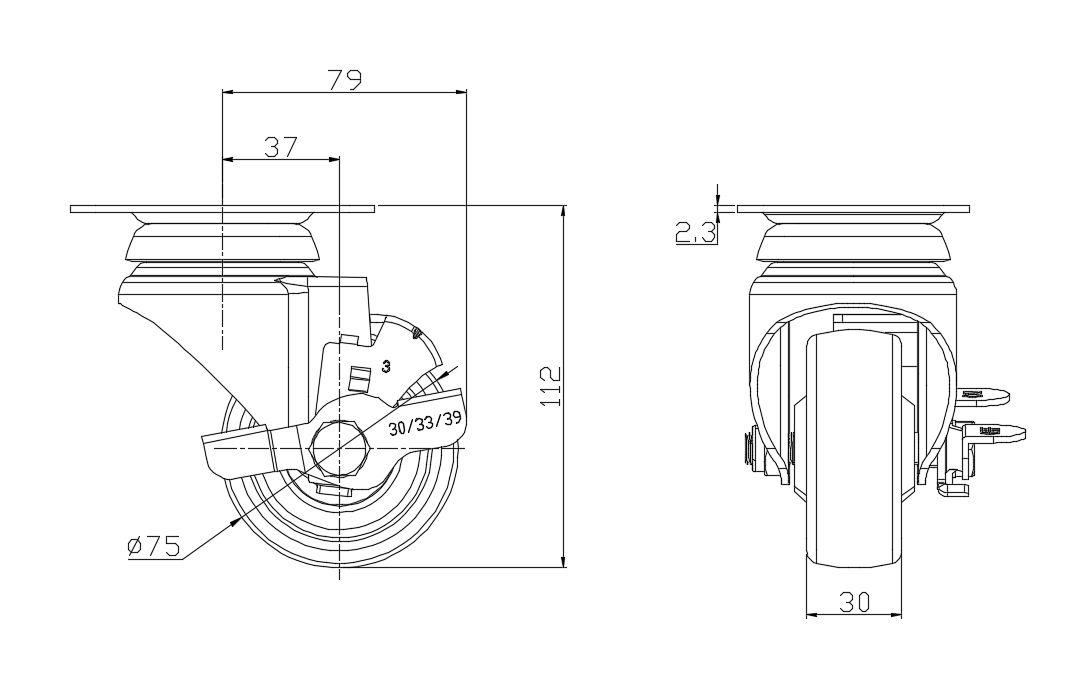 Rubber Wheel Diameter × Wheel Width 75 x 30mm |