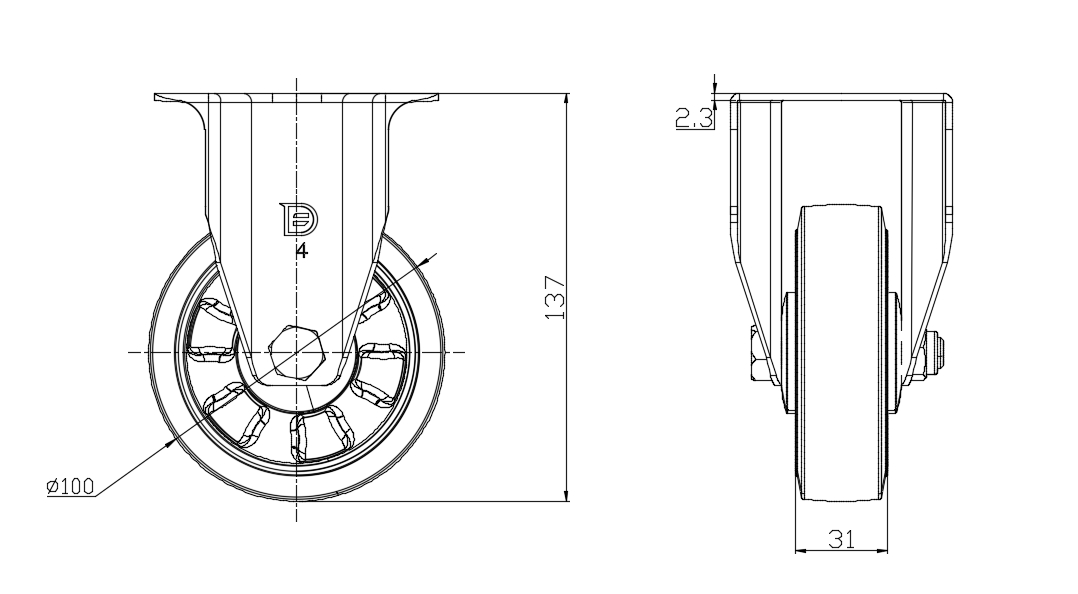 Wheel tread: Thermoplastic rubber elastomer (TPR) Wheel Center: Made of high-quality impact-resistant polypropylene Drawings are for reference only and may differ from the product |