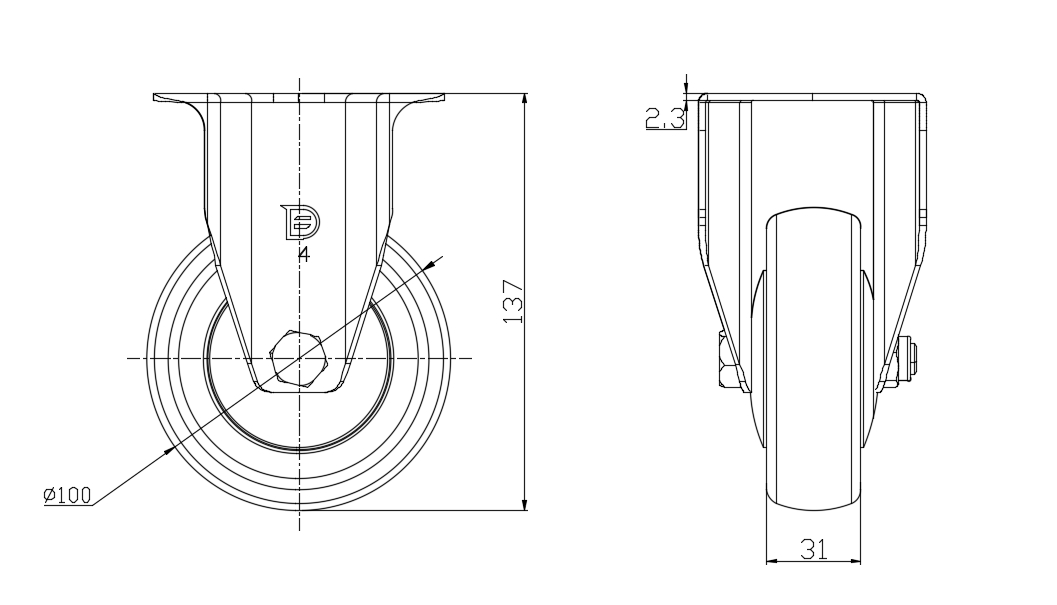 Rigid castor, Stamping Fabricated Caster Fork - 75 x 45 mm (3" x 1-3/4") Bolt Hole Spacing Surface Zine-Plated, Mounting Type - Top Plate High-quality Impact Resistance Polypropylene Wheel Center,High-Quality Thermoplastic Rubber (TPR) Wheel Tread Pearl grey, Bearing - Ball Bearing. |