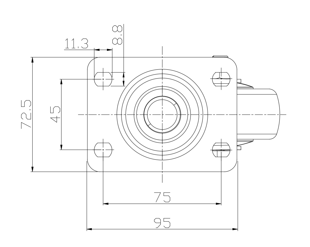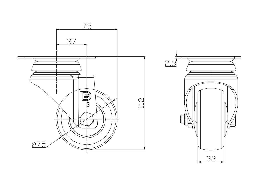 Swivel castor, Top Plate Riveted Stamping Fork - 75 x 45 mm (3" x 1-3/4") Bolt Hole Spacing Surface Zine-Plated, Top Plate Mounting Type Impact resistant High-quality Impact Resistance Polypropylene Wheel Center,High-Quality Thermoplastic Rubber (TPR) Wheel Tread Grey, Bearing - Ball Bearing. |