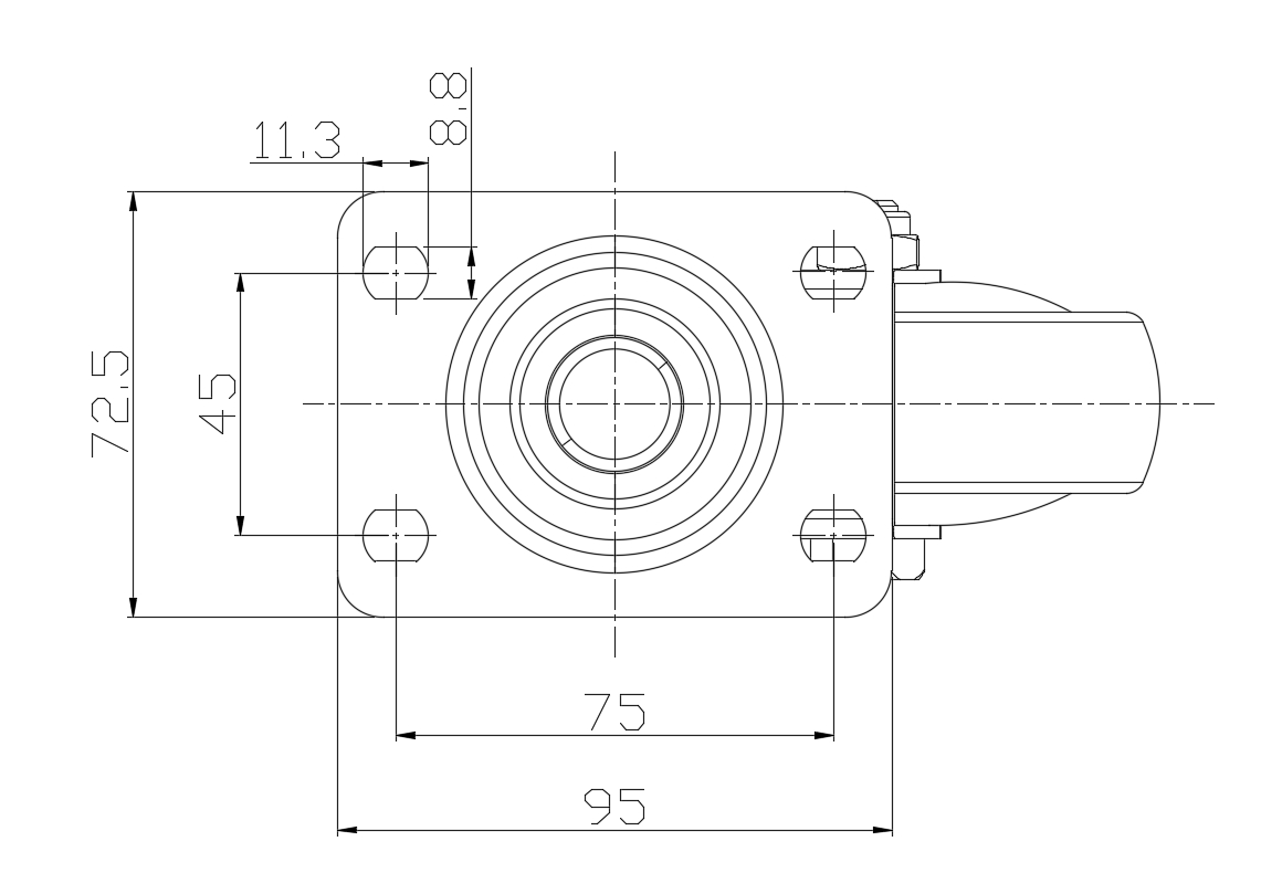 Wheel tread: Thermoplastic rubber elastomer (TPR) Wheel Center: Made of high-quality impact-resistant polypropylene Drawings are for reference only and may differ from the product |