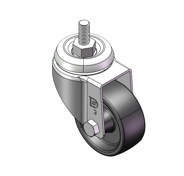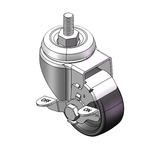 Swivel Caster, thread-Riveted Stamping Fork Fork—1/2"-13 Extended control lever surface, Mounting Type - Threaded Stem device + anti-loosening glue Polypropylene Wheel Center and Wheel Tread Black, wheel—Anti-thread wheel cover. |