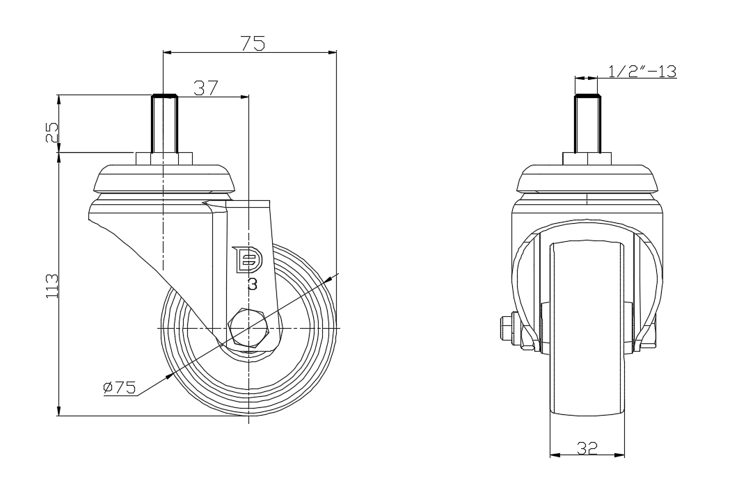 PP (black) Wheel Diameter x Wheel Width 75 x 32mm |