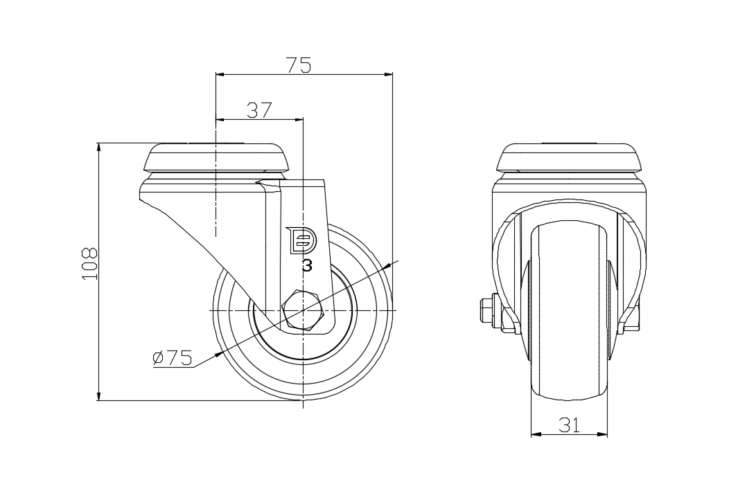 Swivel Caster, Single Bolthole Stamping Fork - ∅10.5 Extended control lever surface, Mounting Type - Threaded Stem device High-quality Impact Resistance Polypropylene Wheel Center,High-Quality Thermoplastic Rubber (TPR) Wheel Tread Dark gray, Bearing - Ball Bearing. |