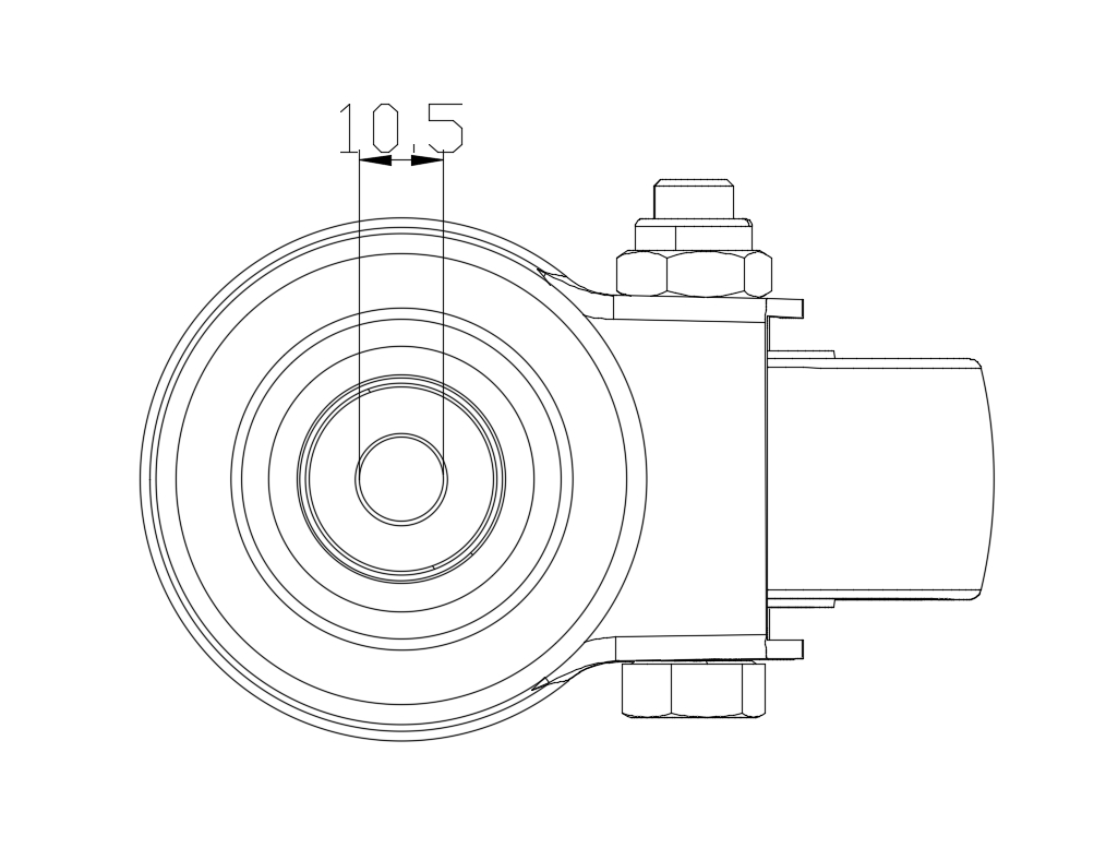 Swivel Caster, Single Bolthole Stamping Fork - ∅10.5 Extended control lever surface, Mounting Type - Single Bolthole device Aluminum core, High Quality Polyurethane Wheel Tread Gray, Bearing - Ball Bearing. |