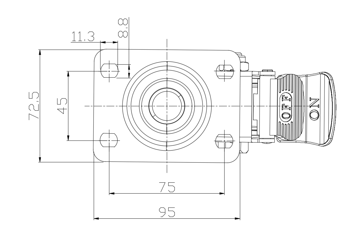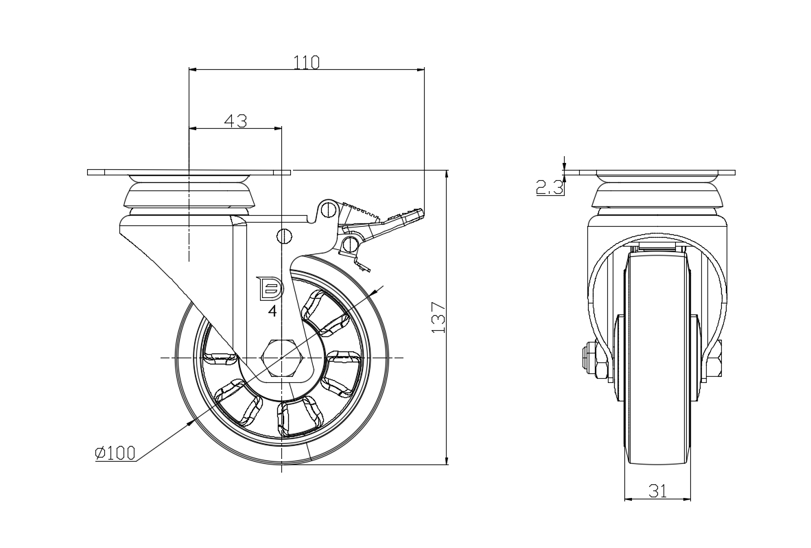 Wheel tread: Thermoplastic rubber elastomer (TPR) Wheel Center: Made of high-quality impact-resistant polypropylene Drawings are for reference only and may differ from the product |