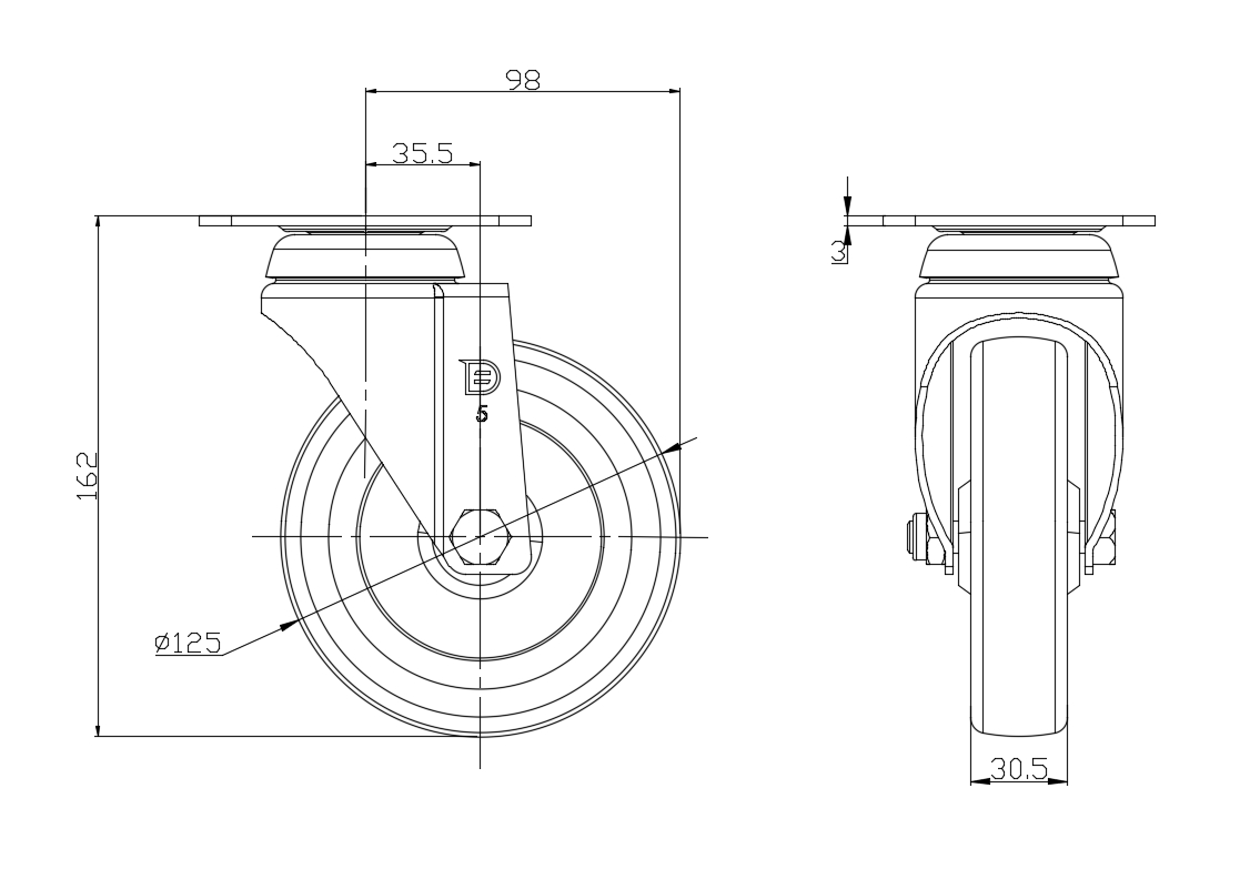 Rubber Wheel Diameter × Wheel Width 125 x 30.5mm |