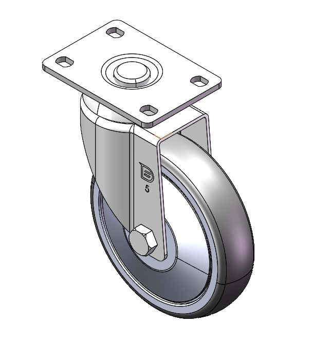 Swivel castor, Top Plate Riveted Stamping Fork - 75 x 45 mm (3" x 1-3/4") Bolt Hole Spacing Surface Zine-Plated, Top Plate Mounting Type Reinforced Polypropylene, High Quality Polyurethane Wheel Tread Grey, Bearing - Ball Bearing. |