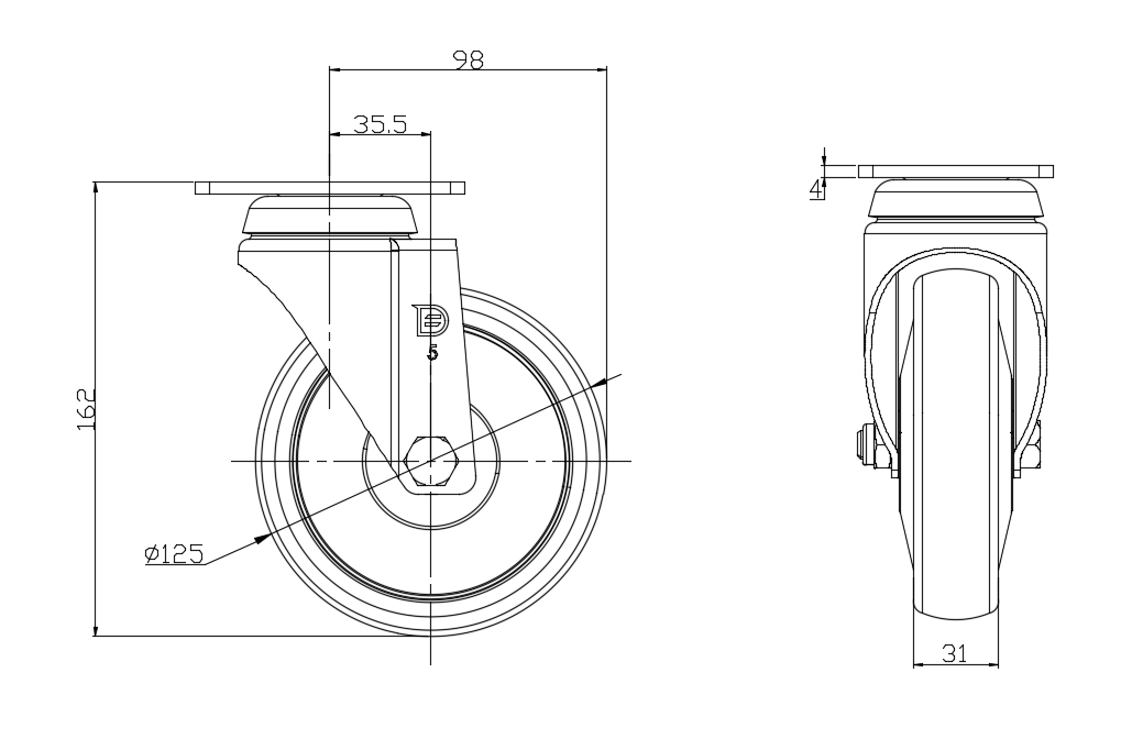 PAU (grey) Wheel Diameter × Wheel Width 125 x 31mm |