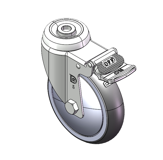 Castors with Total Brake Locking system. Single Bolthole Stamping Fork - ∅12.5 Extended control lever surface, Mounting Type - Single Bolthole device Aluminum core, High Quality Polyurethane Wheel Tread Gray, Bearing - Ball Bearing. |