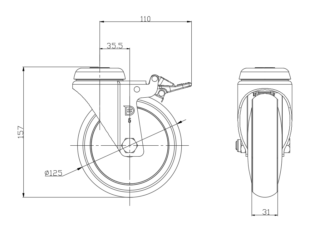 AQPU (brown round) Wheel Diameter × Wheel Width 125 x 31mm |