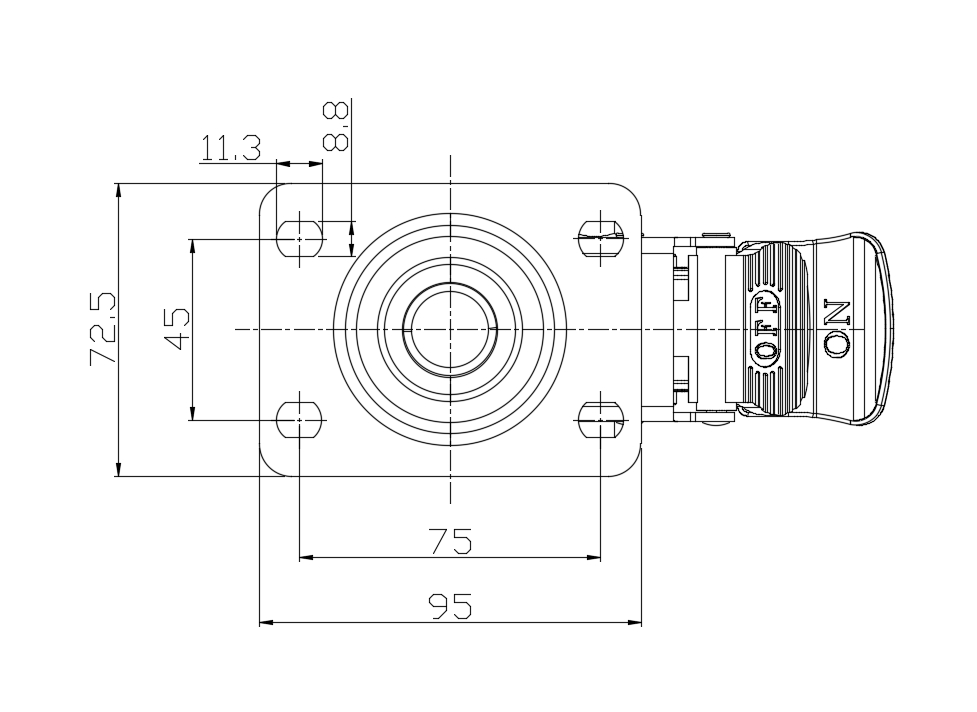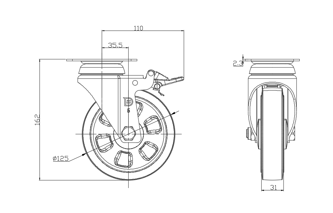 Wheel tread: Thermoplastic rubber elastomer (TPR) Wheel Center: Made of high-quality impact-resistant polypropylene Drawings are for reference only and may differ from the product |