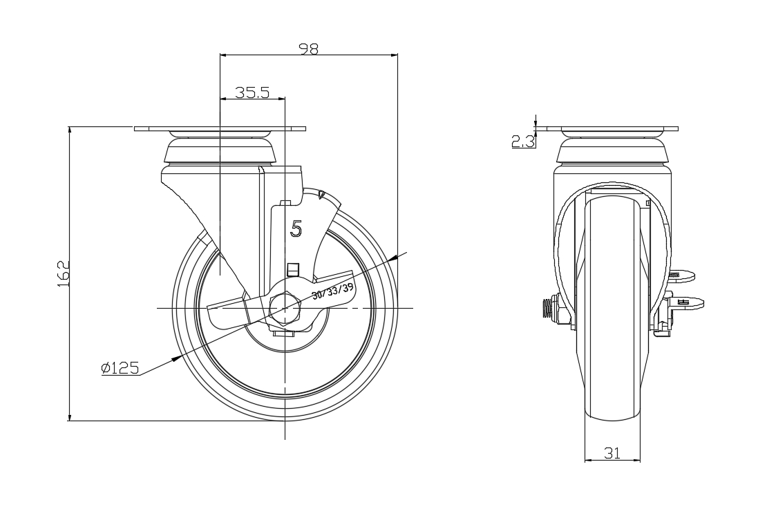 PPR (Pearlescent dark gray) Wheel Diameter × Wheel Width 125 x 31mm |