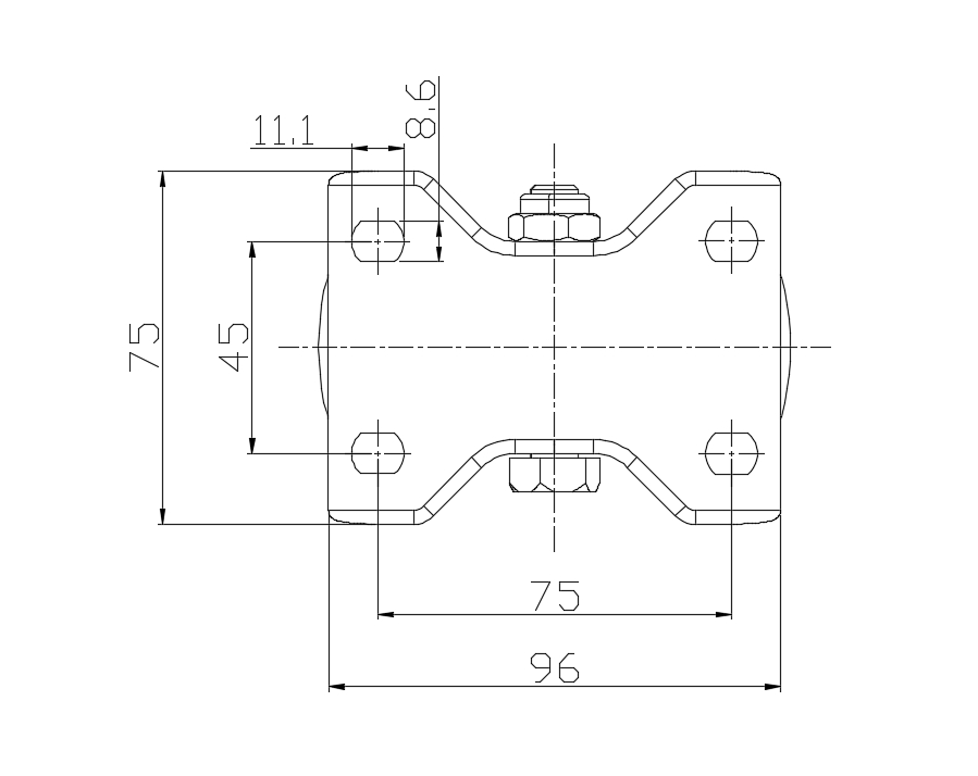 Rigid castor, Stamping Fabricated Caster Fork - 75 x 45 mm (3" x 1-3/4") Bolt Hole Spacing Surface Zine-Plated, Mounting Type - Top Plate Wheel Tread And Wheel Center Made Of Compression Molded Phenolic Resin Filled With Macerated fabric Black, wheel - Anti-thread wheel cover. |