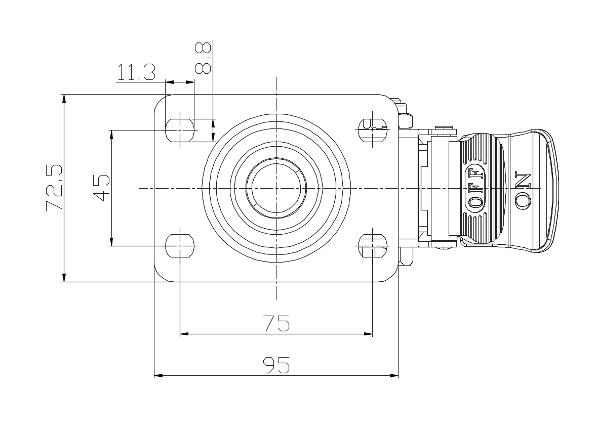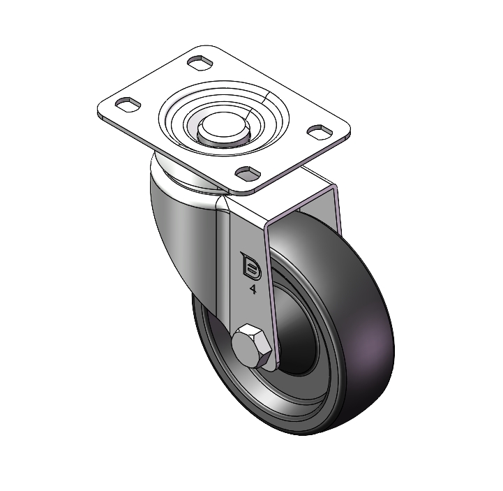 Castors with Total Brake locking system. Top Plate Riveted Fork - 75 x 45 mm (3" x 1-3/4") Bolt Hole Spacing Surface Zine-Plated, Top Plate Mounting Type Compressed synthetic resin Wheel Center and Wheel Tread with impregnated fabric Black, wheels - Plain Bearing. |