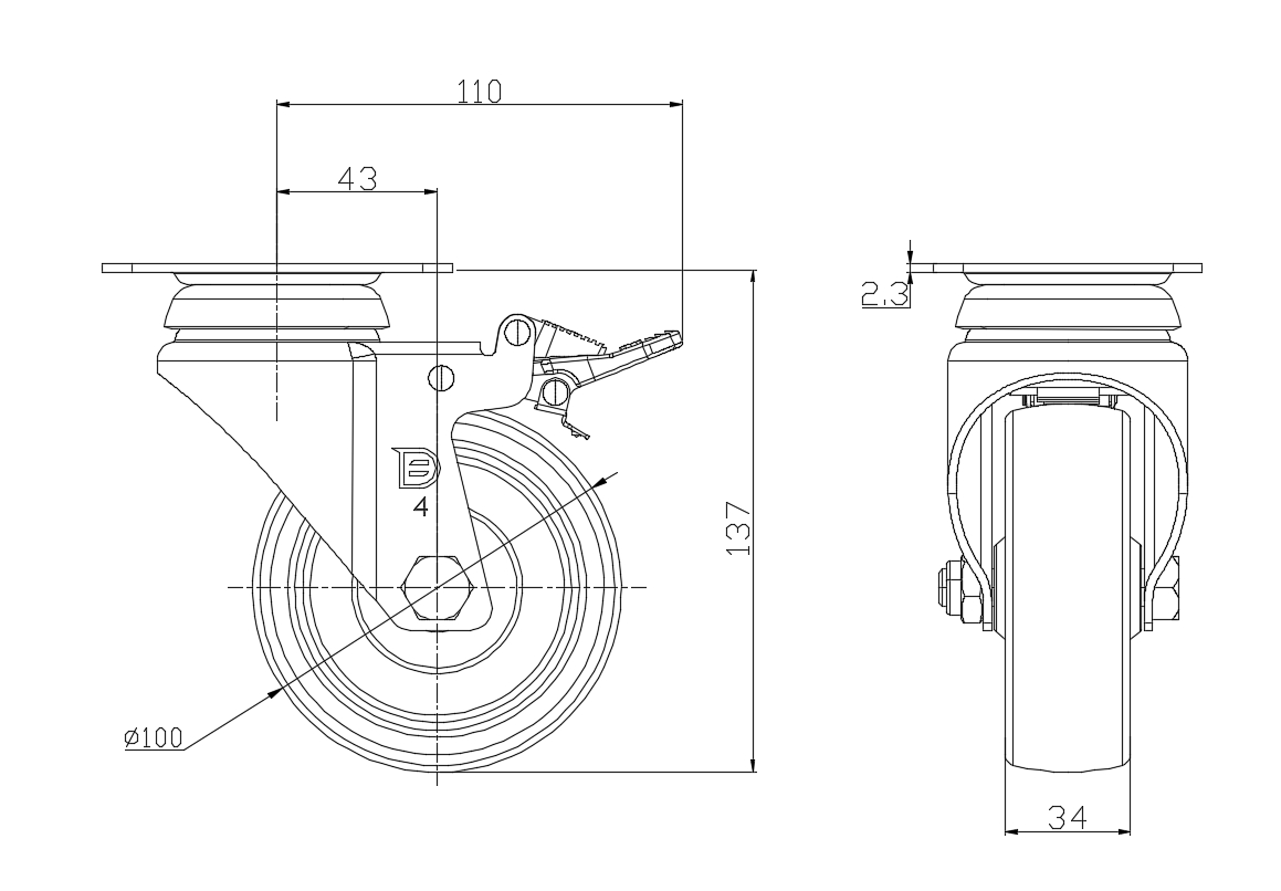 Phenolic (black) Wheel Diameter × Wheel Width 100 x 34mm |