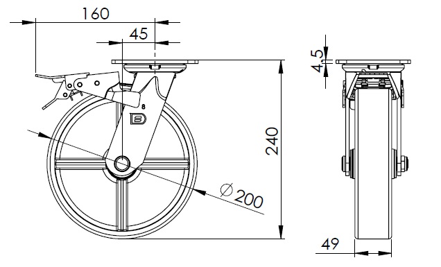 | PU轮(绿) 轮径 × 轮宽 200 x 49mm |