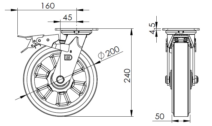 | W全效轮(灰) 轮径 × 轮宽 200 x 50mm |