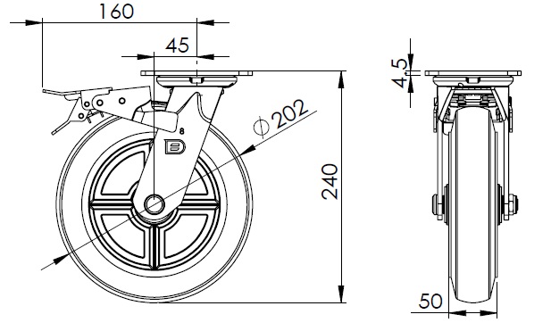 | 橡胶轮(黑) 轮径 × 轮宽 202 x 50mm |