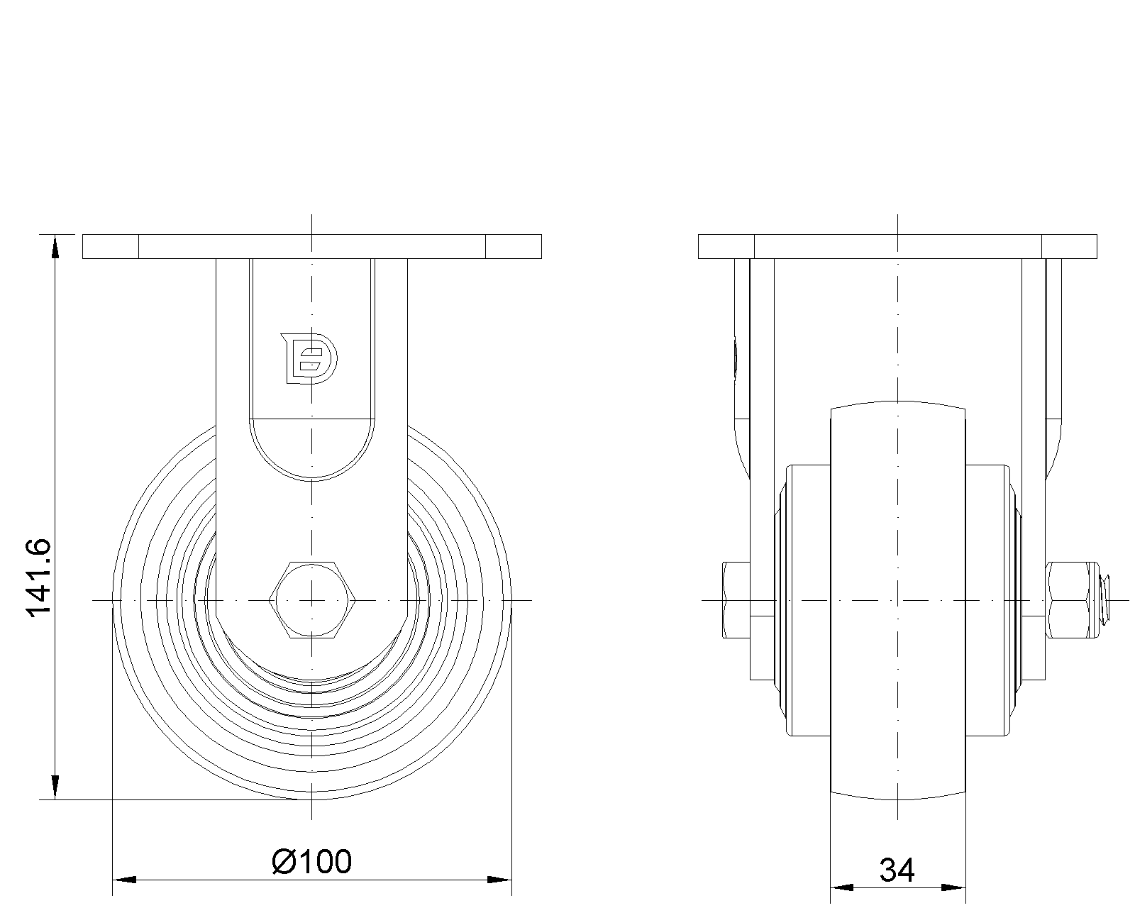 | PU轮(红弧) 轮径 × 轮宽 100 x 34mm |