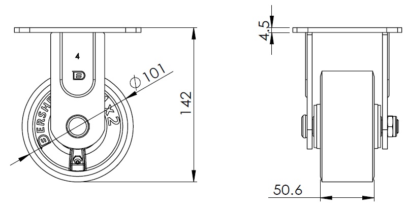 PU (green) Wheel Diameter × Wheel Width 101 x 50.6mm |