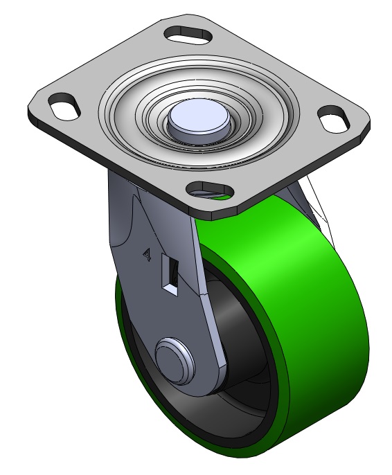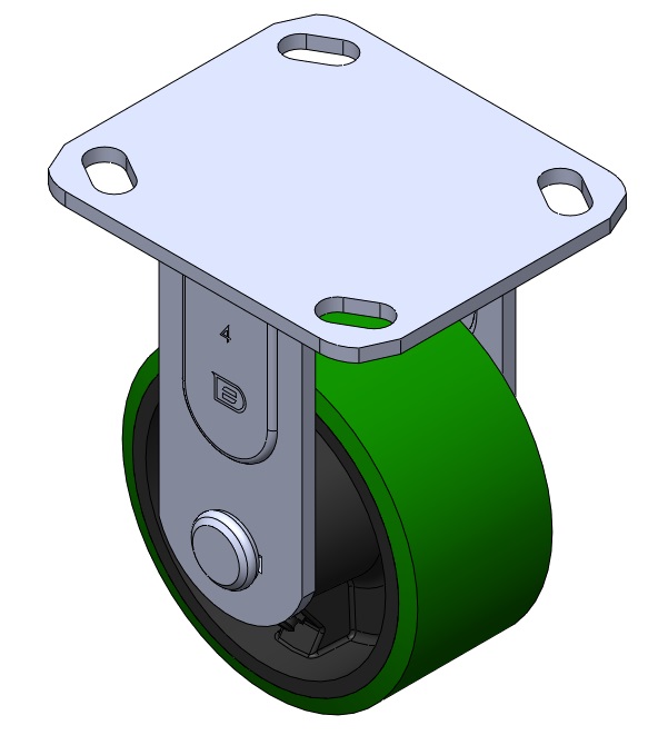Rigid Caster with Welded Caster Fork Zine-Plated, Mounting Type - Top Plate Cast Iron Wheel Center with High Quality Polyurethane tread Iron green, Bearing—Ball Bearing. |