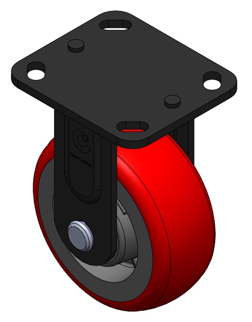 Rigid castor, Welded Caster Fork Surface electroplating, Mounting Type - Top Plate High-quality Impact Resistance Polypropylene Wheel Center, High-Quality Thermoplastic Polyurethanes (TPU) wheel tread Red, Bearing - Ball Bearing. |